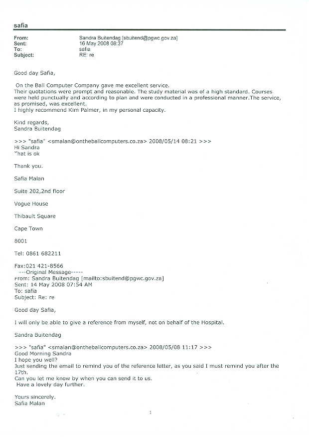 GTS Capestorm People Development Africa - Angelique Sayed Adelle Francis reference letter Cape Administration Reference Letter Carol Gysman's reference letter Nigel Johannes reference letter George Hospital - Sandra Buitendag Department of health - Sharon Chaney - Lakhiwe Zaleni's reference letter Bonang Kenosi